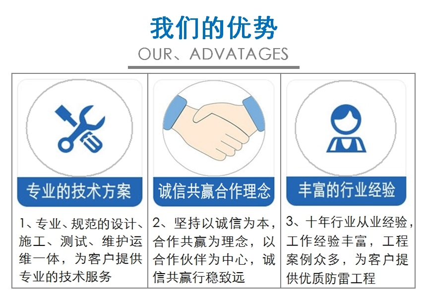 广州标置防雷科技有限公司专业从事建筑物防雷接地设计施工;电力安防通信系统机房设备防雷接地,天然油库等易燃易爆场所防雷接地施工;防雷设施检测、整改、维护的专业公司。具有广东省建设厅颁发的特种防雷资质证书和安全生产许可证。公司技术力量雄厚,拥有一批专业从事防雷工程设计和施工的技术骨干核心人才,并拥有一支专业的施工队伍和高素质的技术组织团队。 我们按照“整体防护、技术先进、经济合理、安全可靠、维护方便”的原则,竭诚为广大用户提供优质服务。先后承揽了许多大型防雷工程,近年来承接的广州地铁金光大道站地网工程、广东江门监狱防雷整改工程、珠海长隆园区防雷整改工程等项目,工程质量优良,出色完成各项施工任务,深受各单位的好评。
