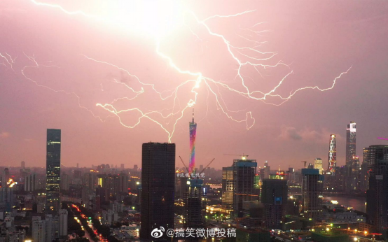 闪电击中广州塔瞬间,太震撼了!